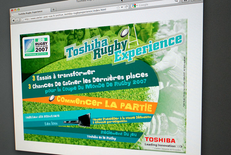 Toshiba - Design & ergonomie du site internet événementiel "JEU - coupe du monde de rugby"