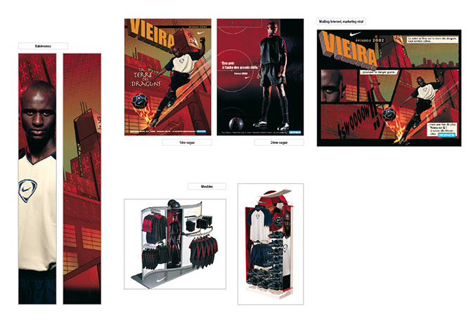 Nike France - Lancement produits "Vieira"dans les magasins "Décathlon". Affiches, mailing, présentoir magasin...